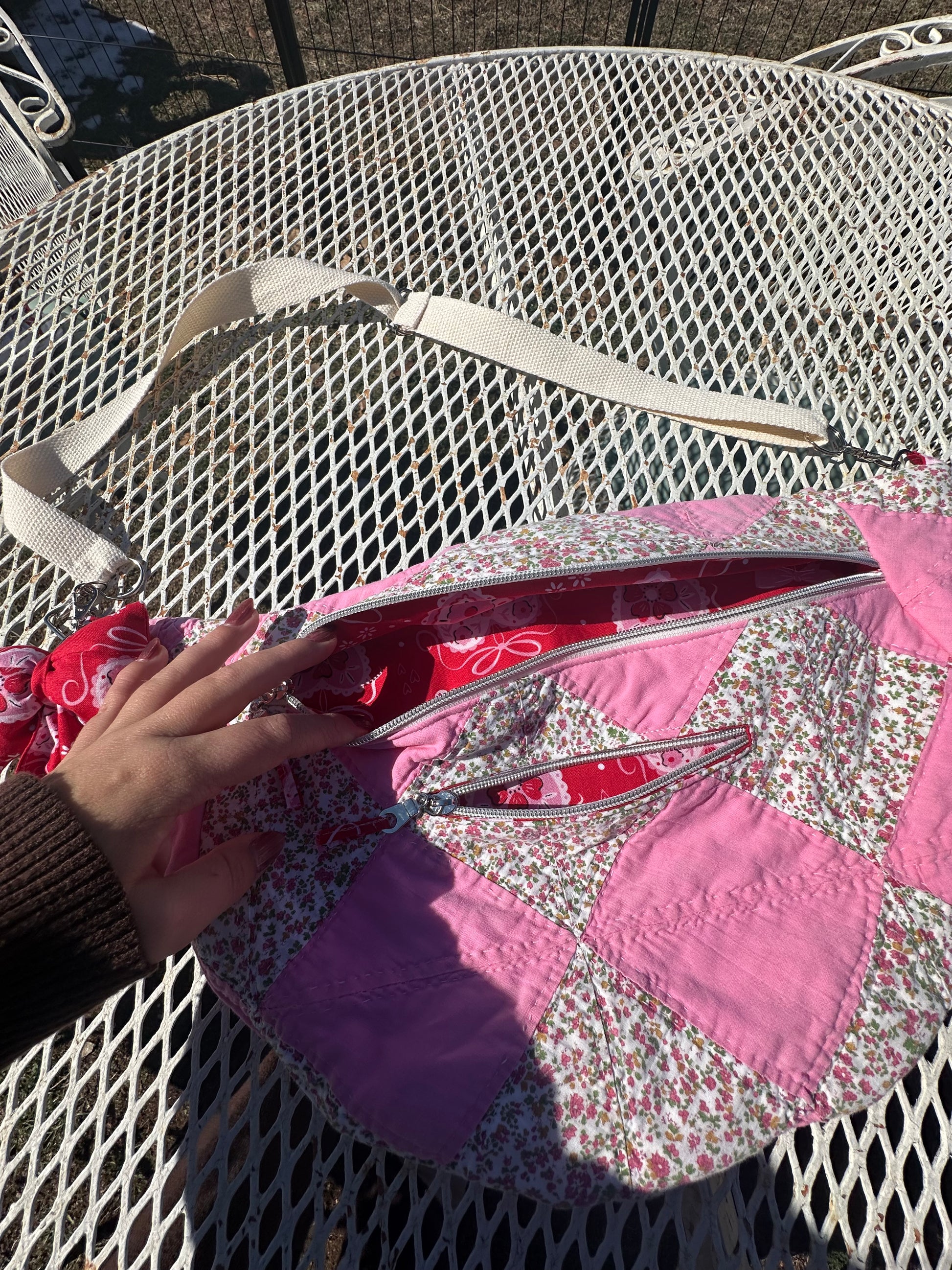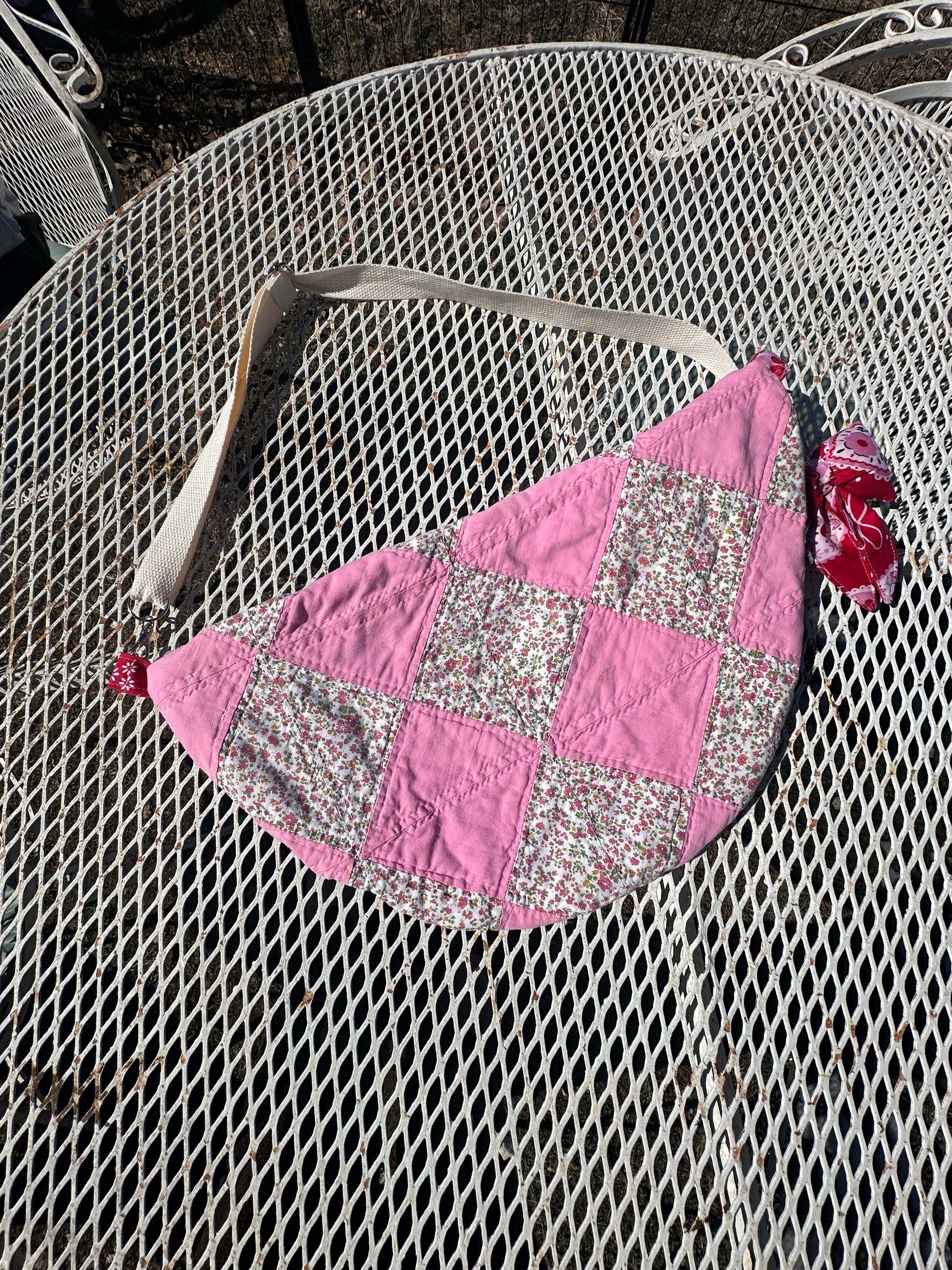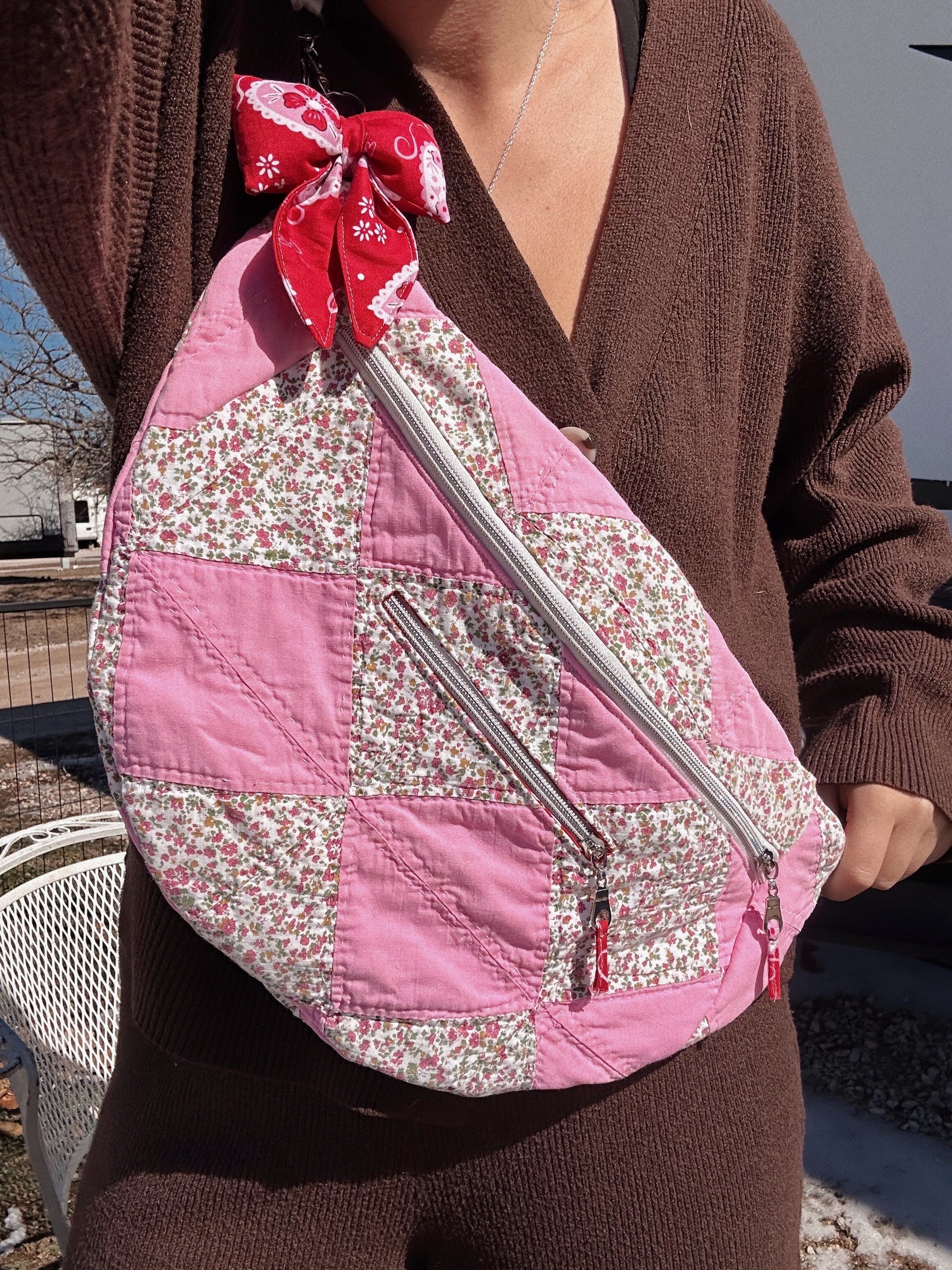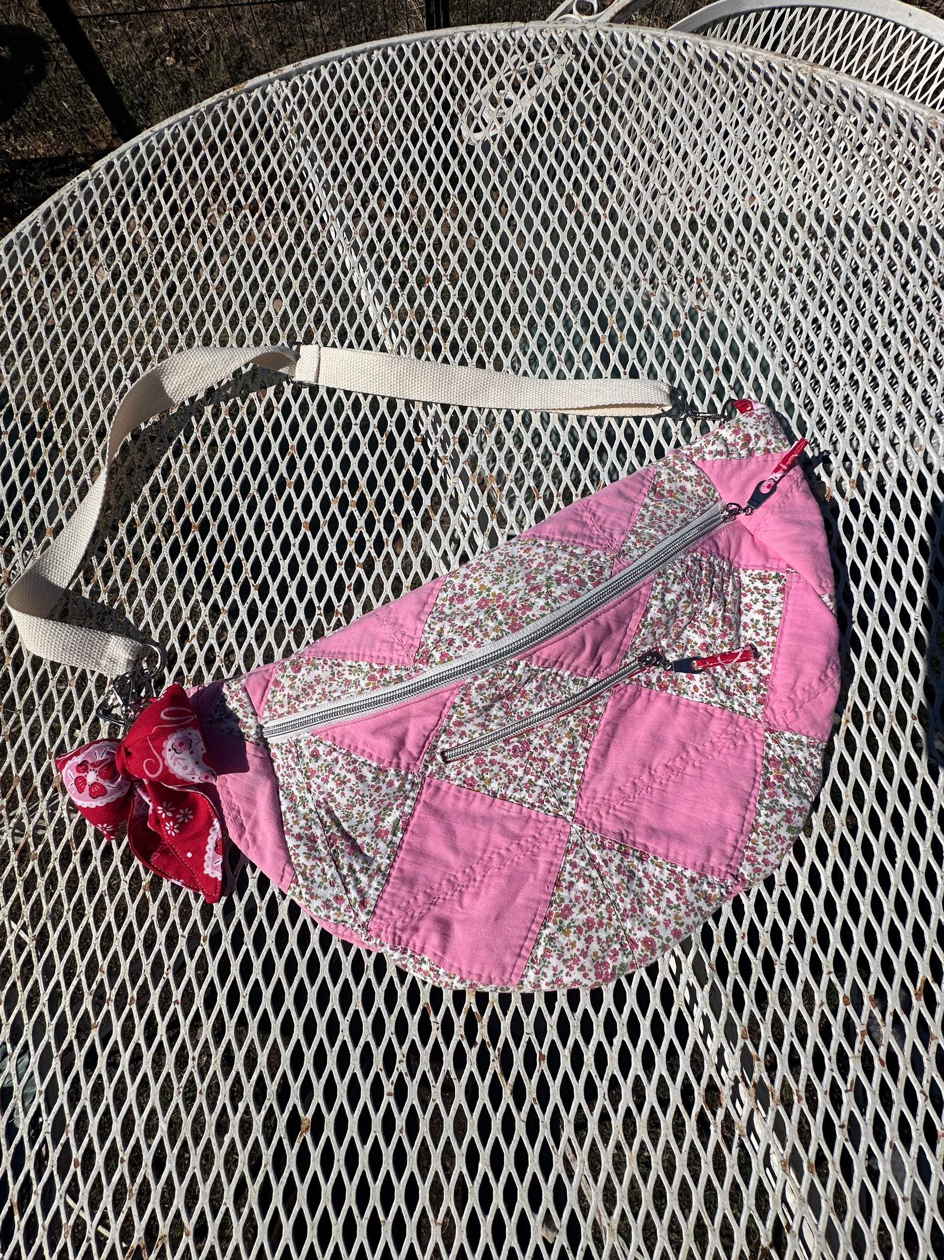 All Fannie’s are made from vintage quilts, have two zipper pockets and a removable adjustable strap
