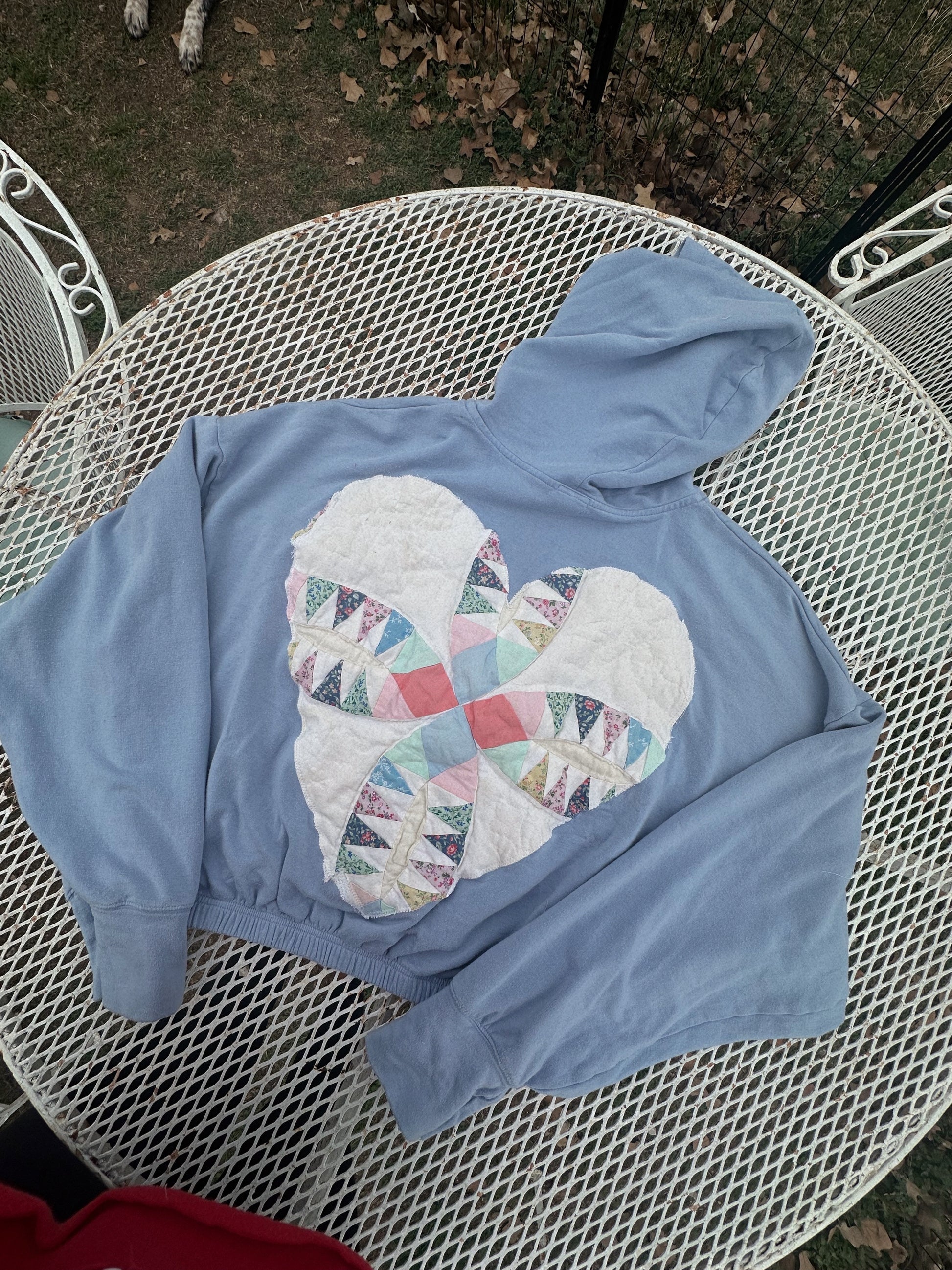 Scrappy heart cropped zip up