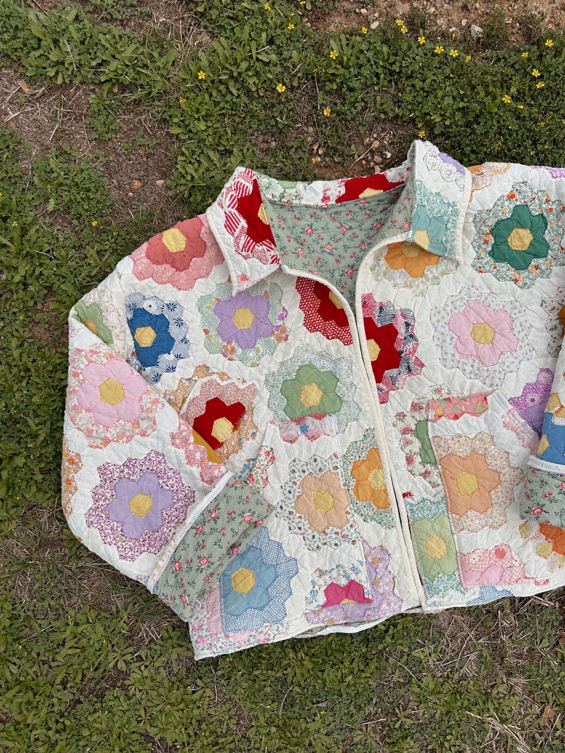 Made from a GORGEOUS vintage handmade Grandmas garden quilt.