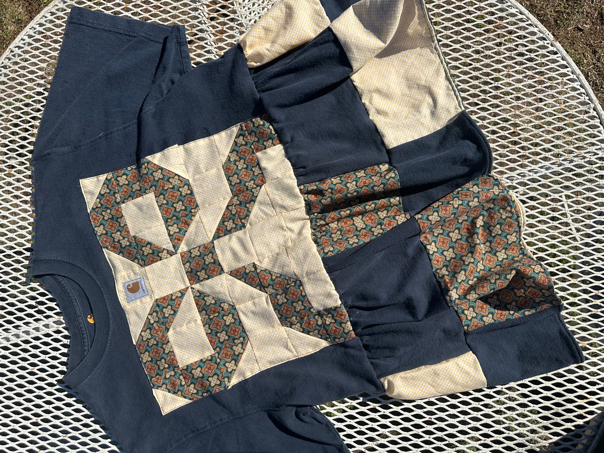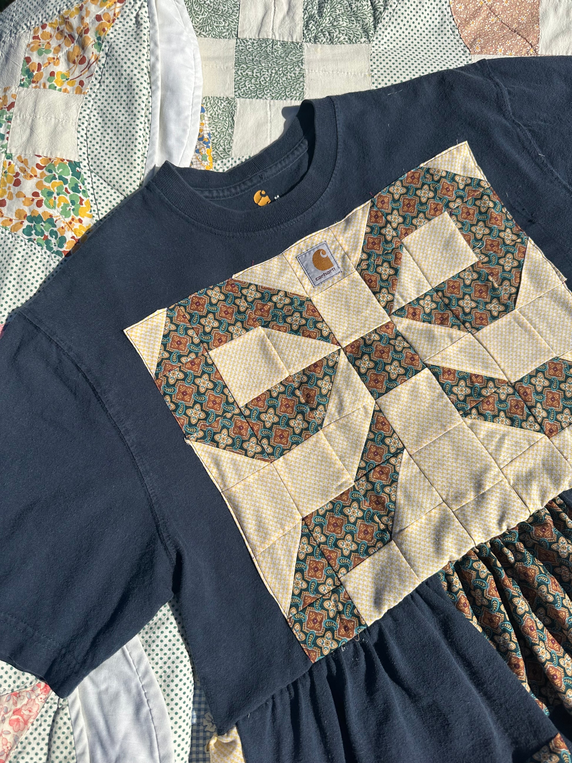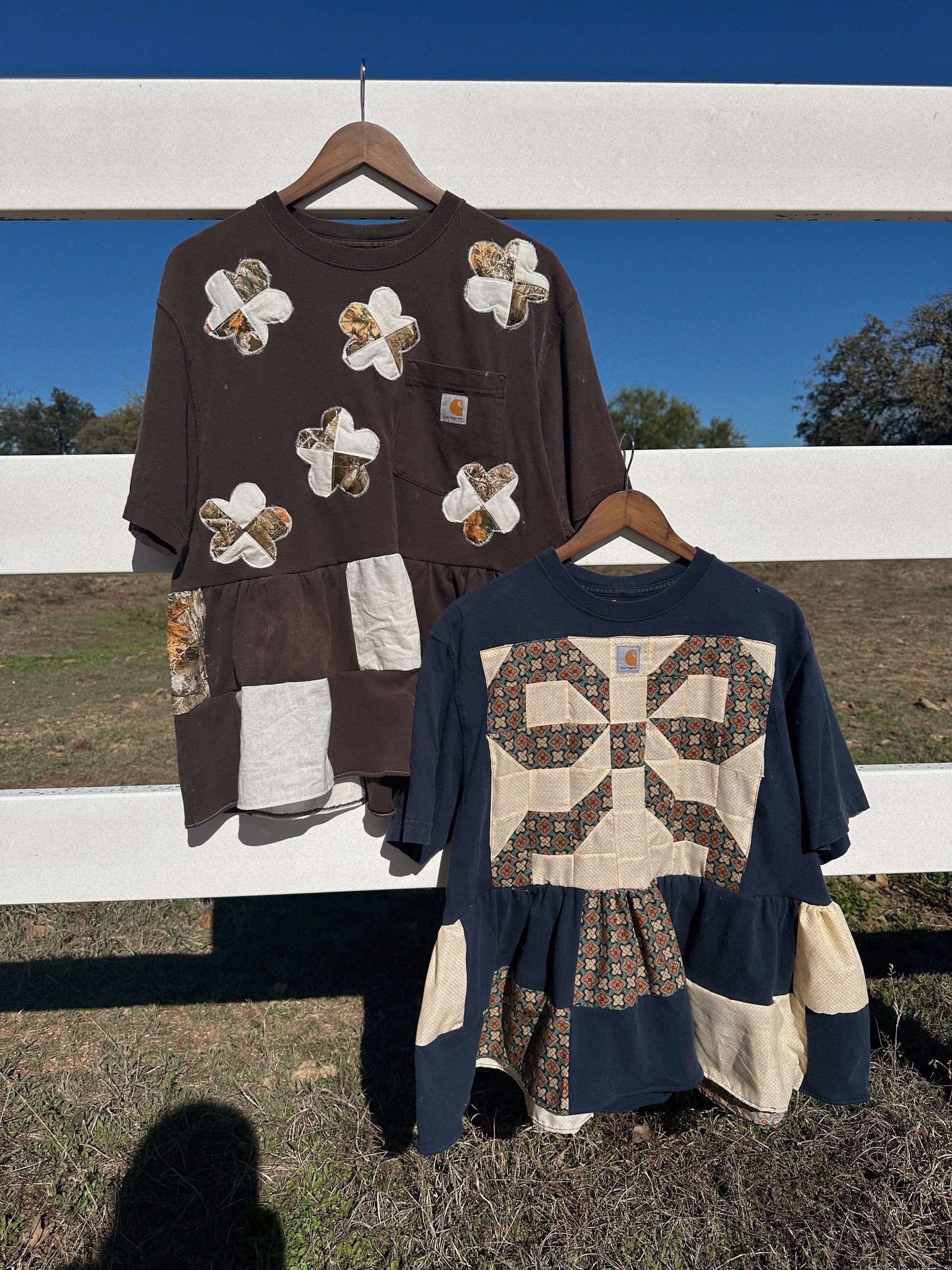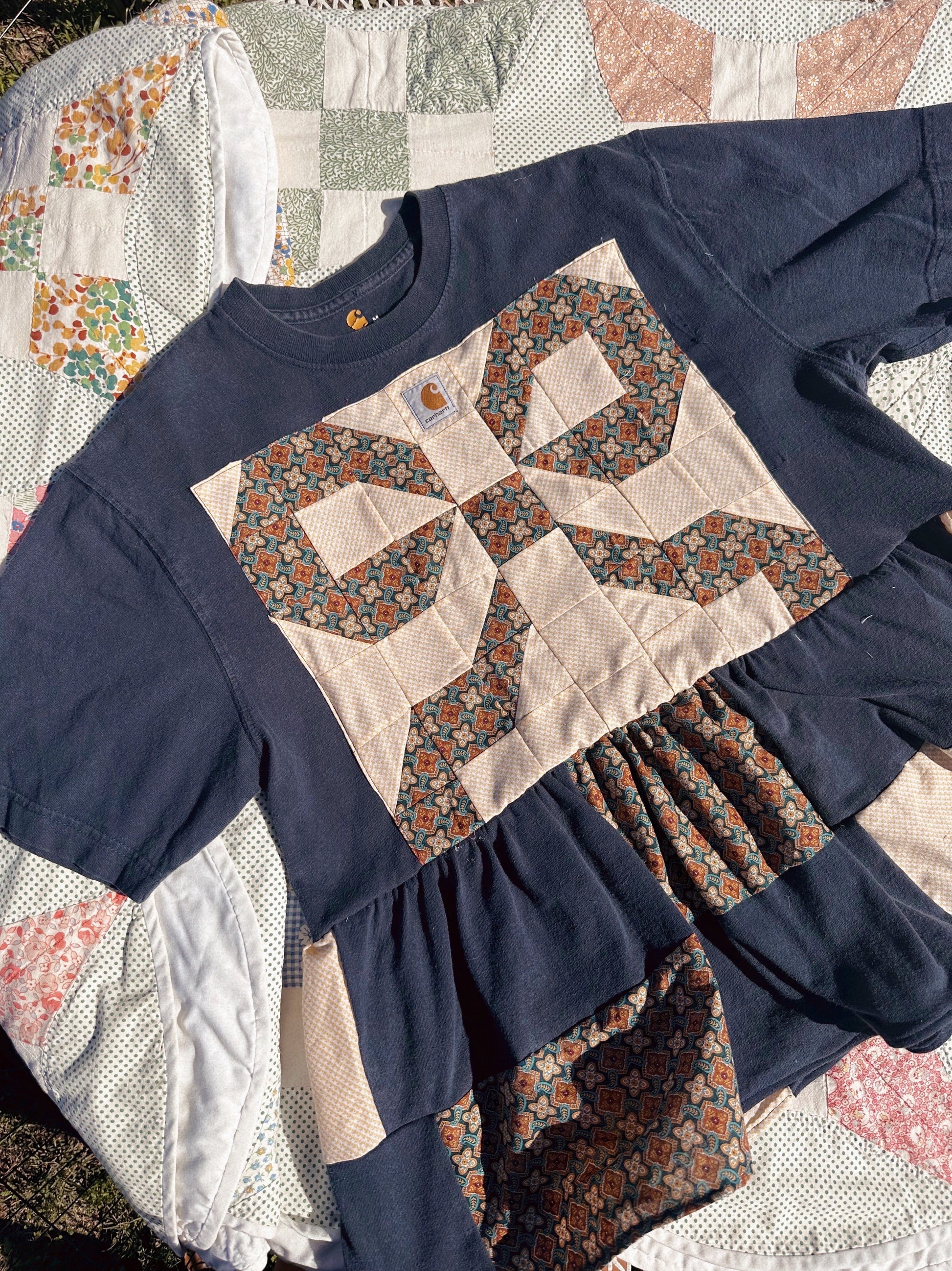 Size medium Carhartt babydoll tee made from thrifted/recycled men’s tees!