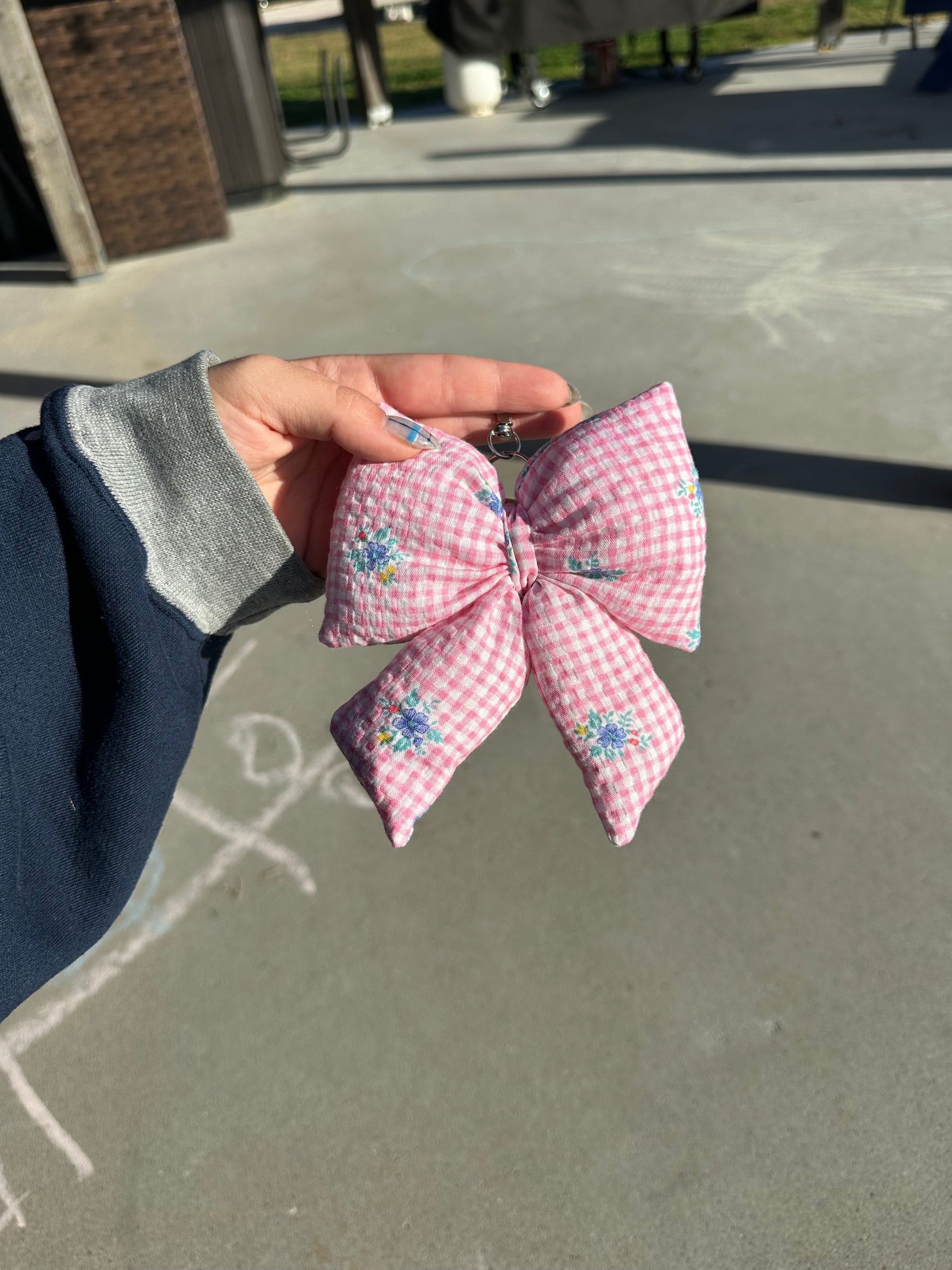 PINK GINGHAM BOW KEYCHAIN