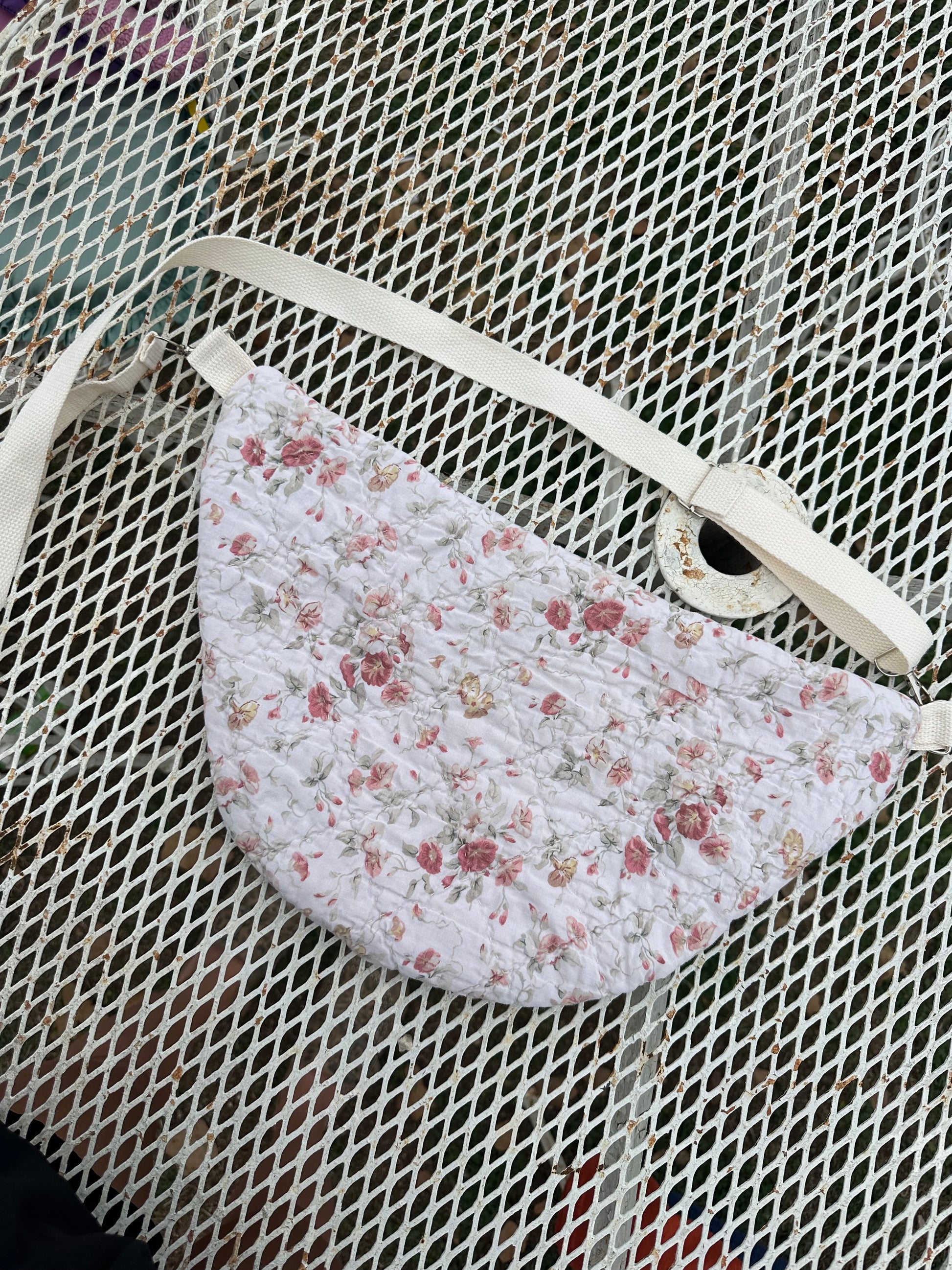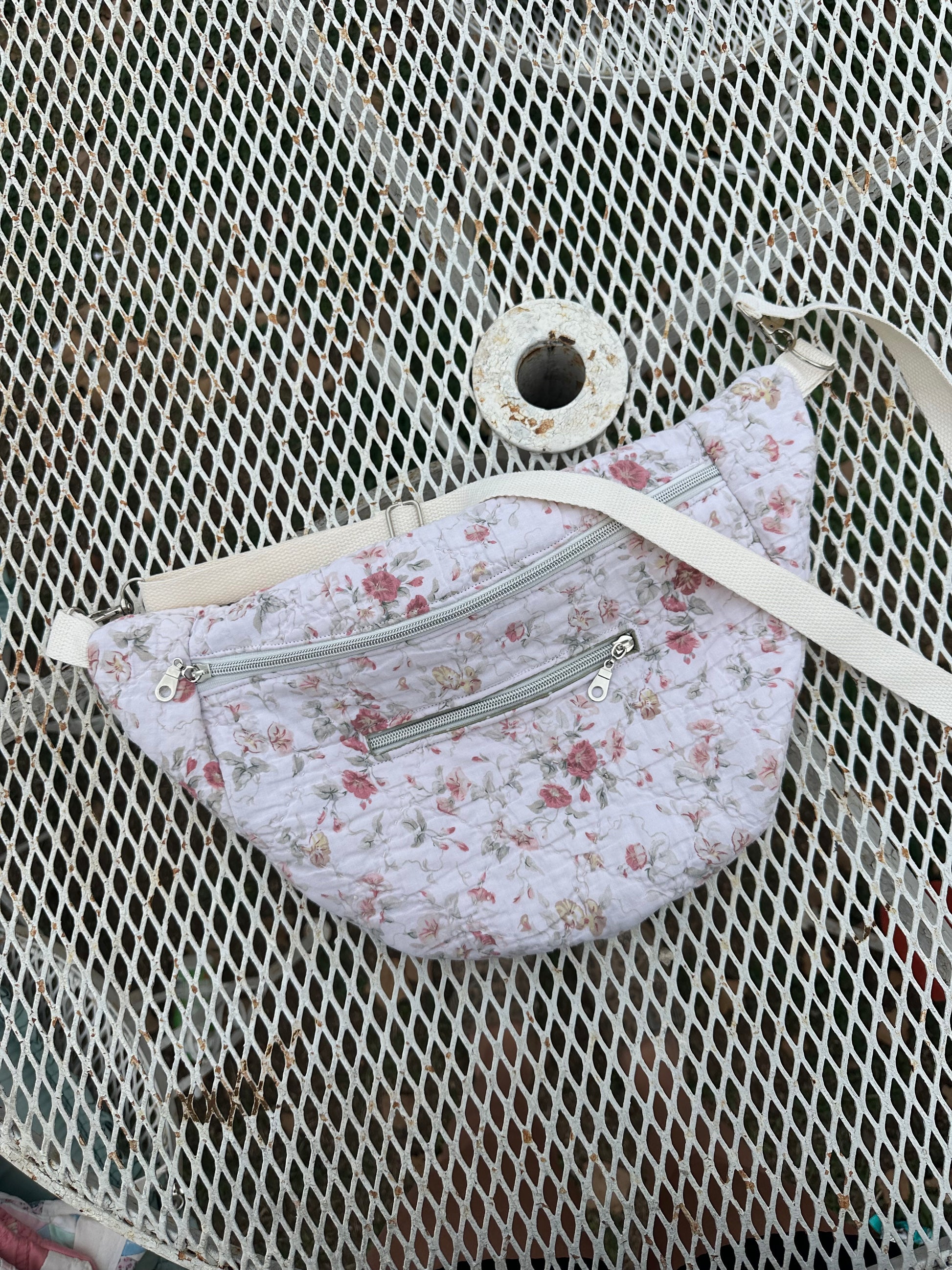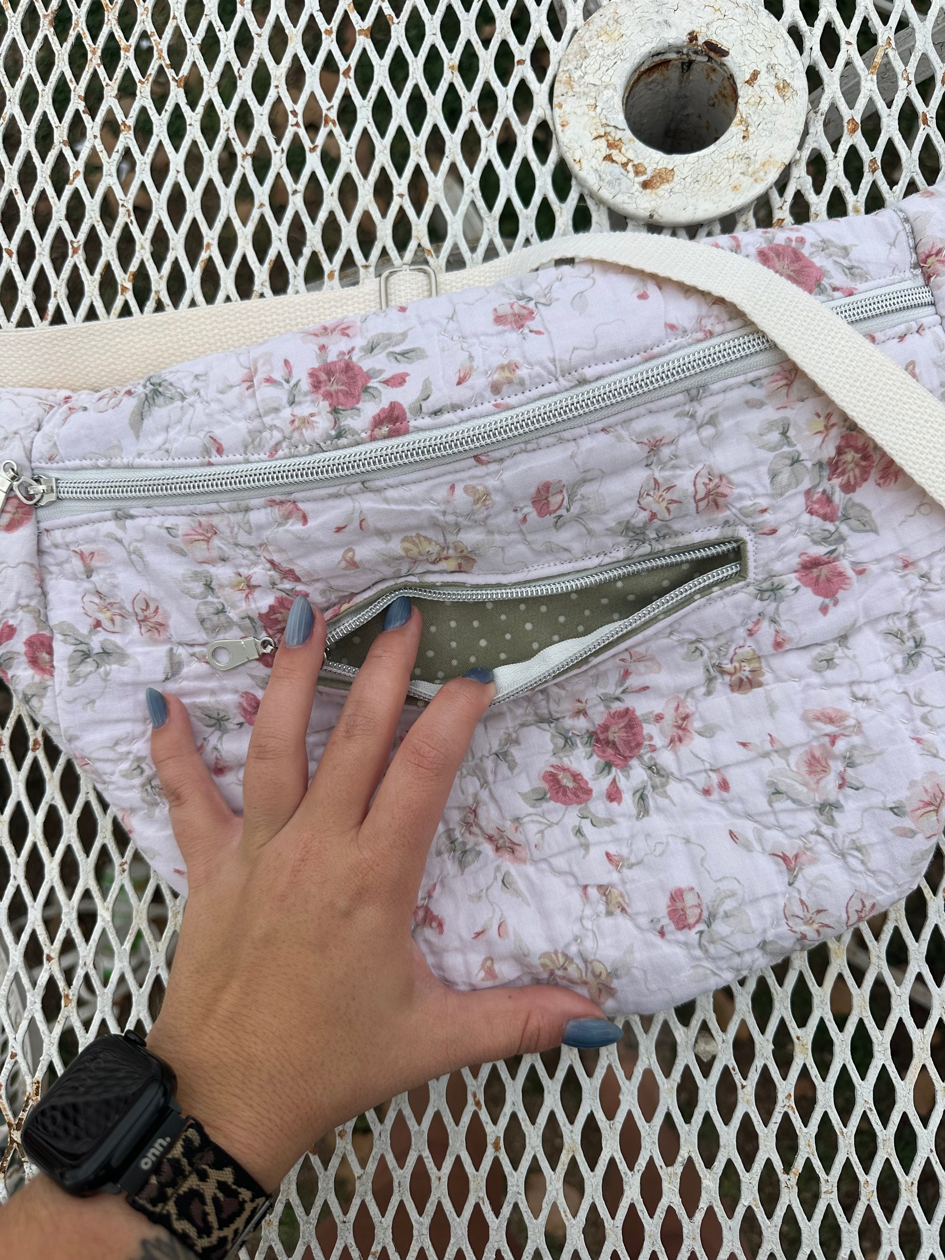 All bags are made with second hand quilts, have removable straps and a mini front pocket as well and the big pocket.