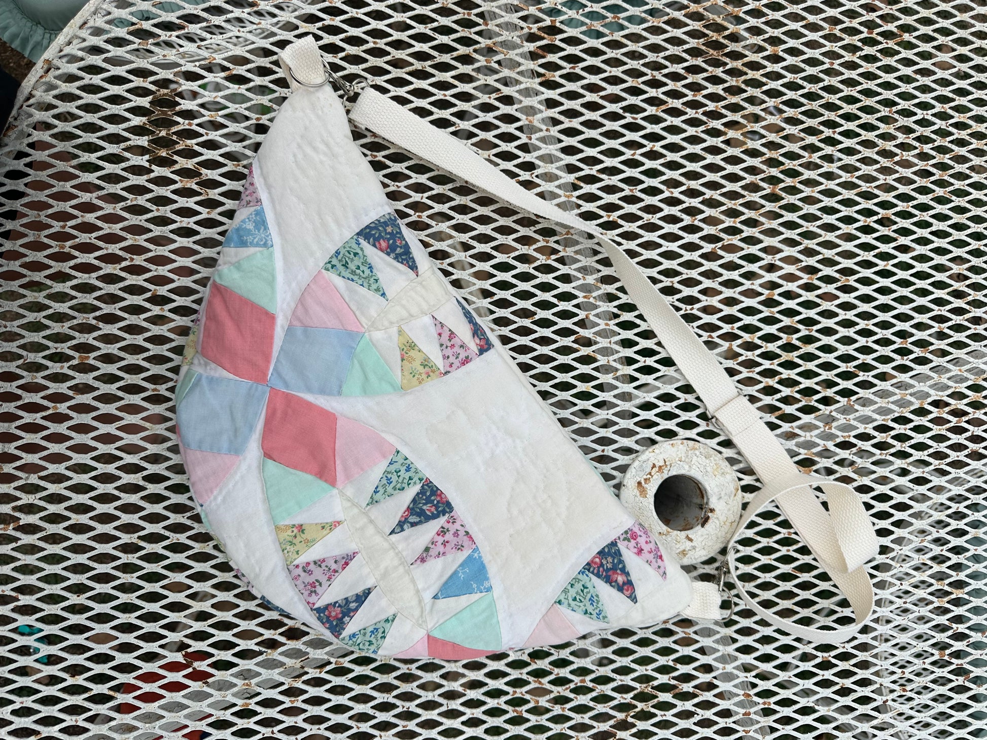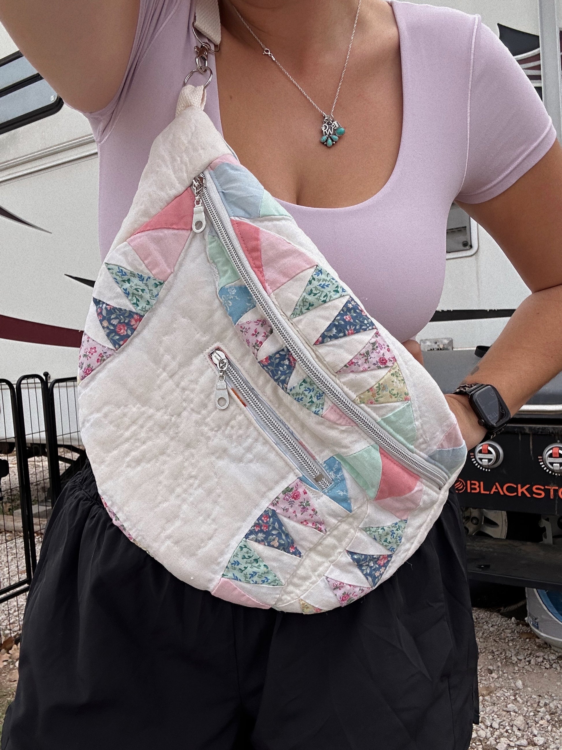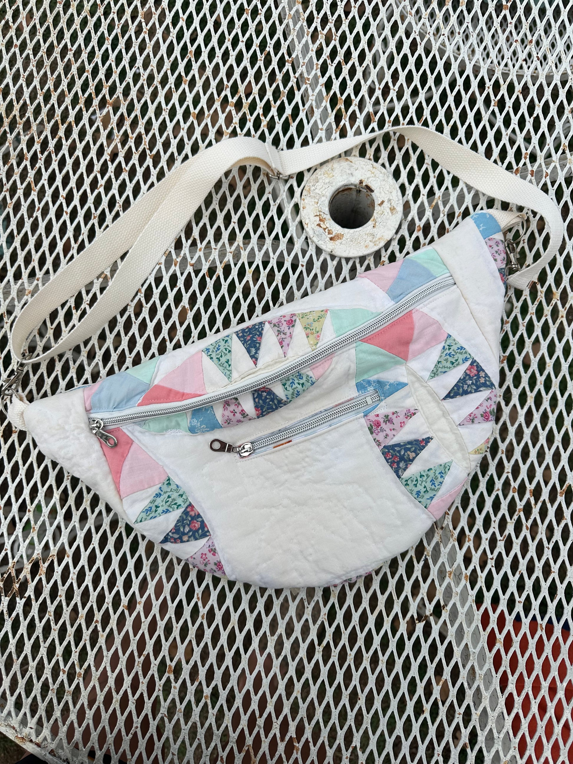 All bags are made with second hand quilts, have removable straps and a mini front pocket as well and the big pocket.