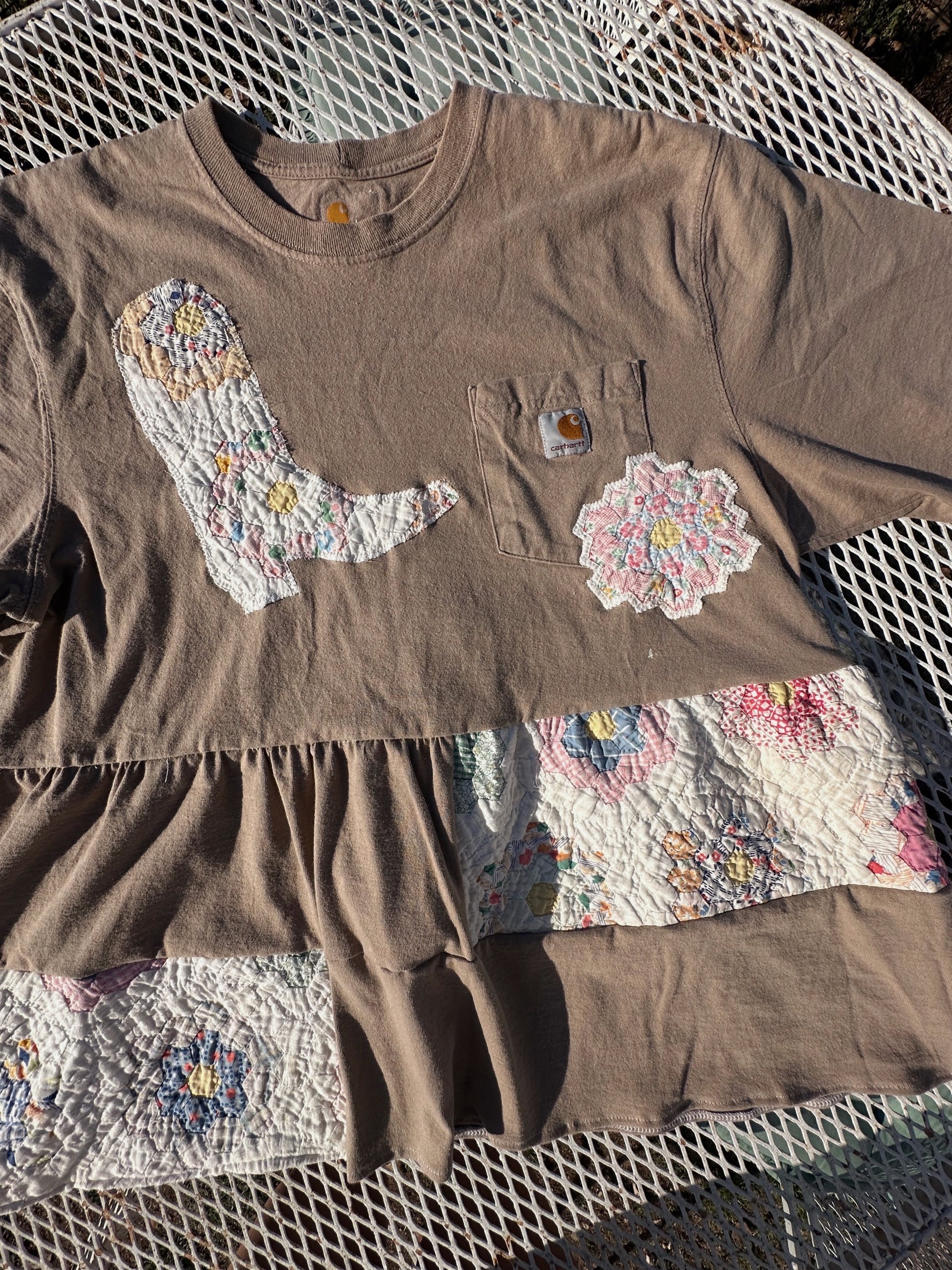 All reworks are made with men Carhartt tees and altered to be a babydoll (FLOWY) fit 🩷 and made to be ONE OF ONE