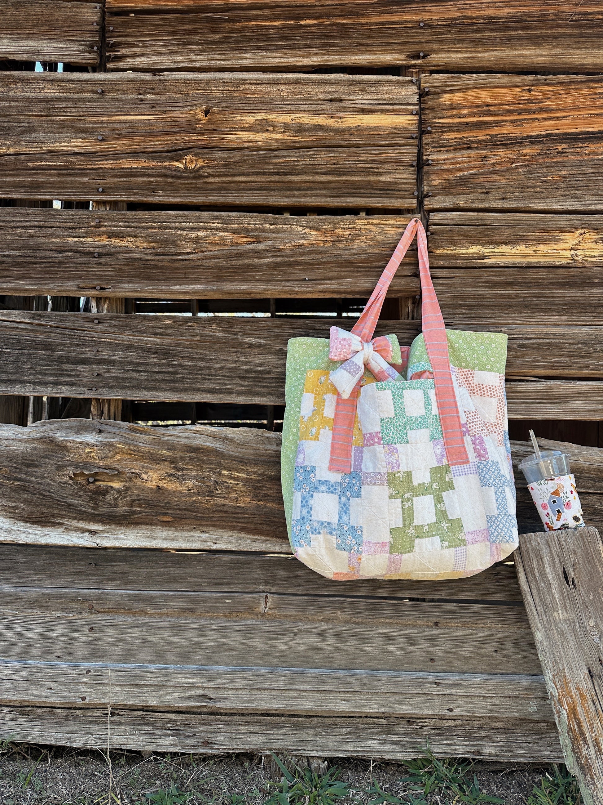 Large quilted tote + Removable matching bow keychain ⚡️ hand made by yours truly 💝